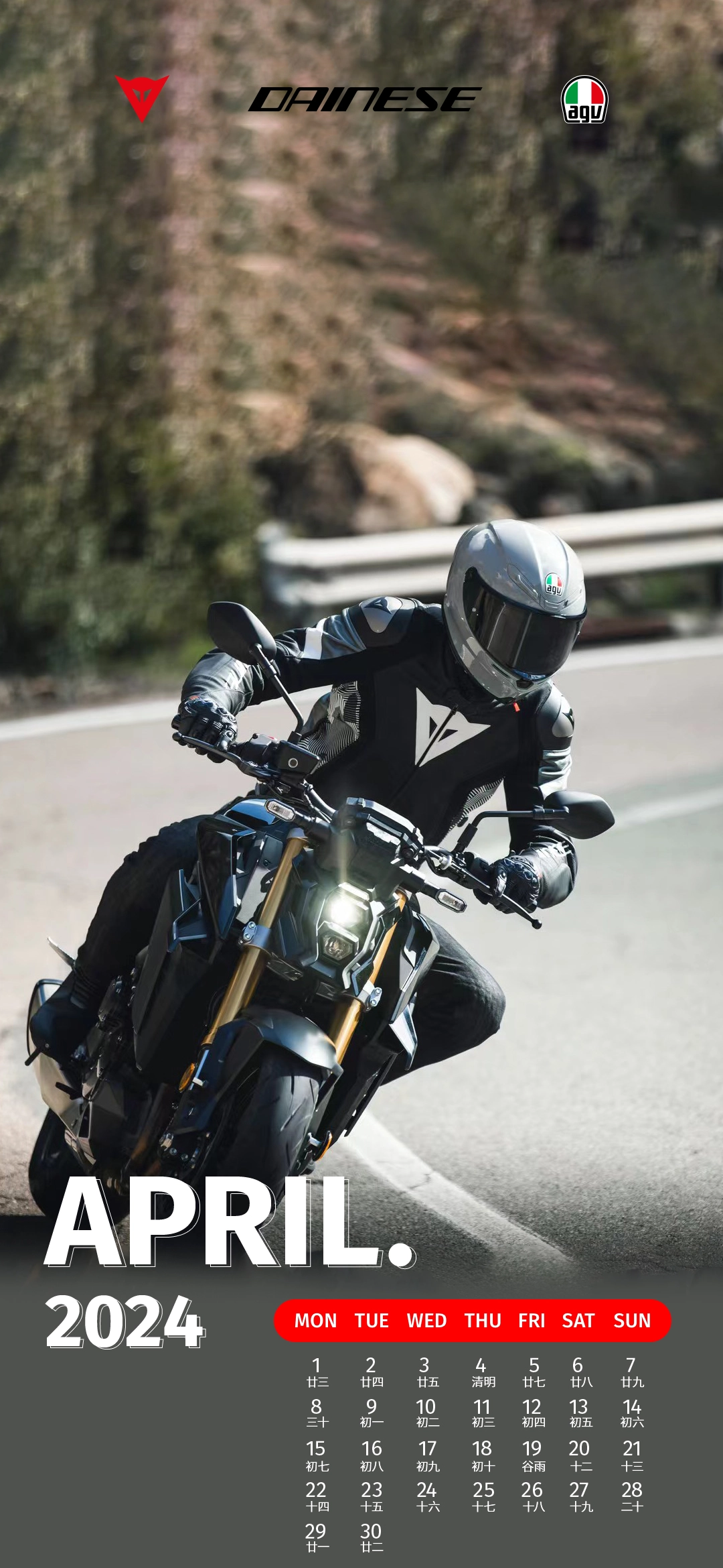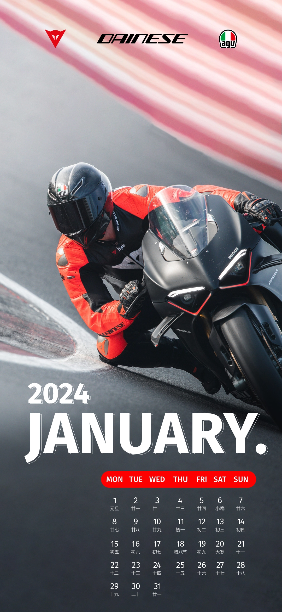 Dainese品牌日历,每月一张独特视觉设计。